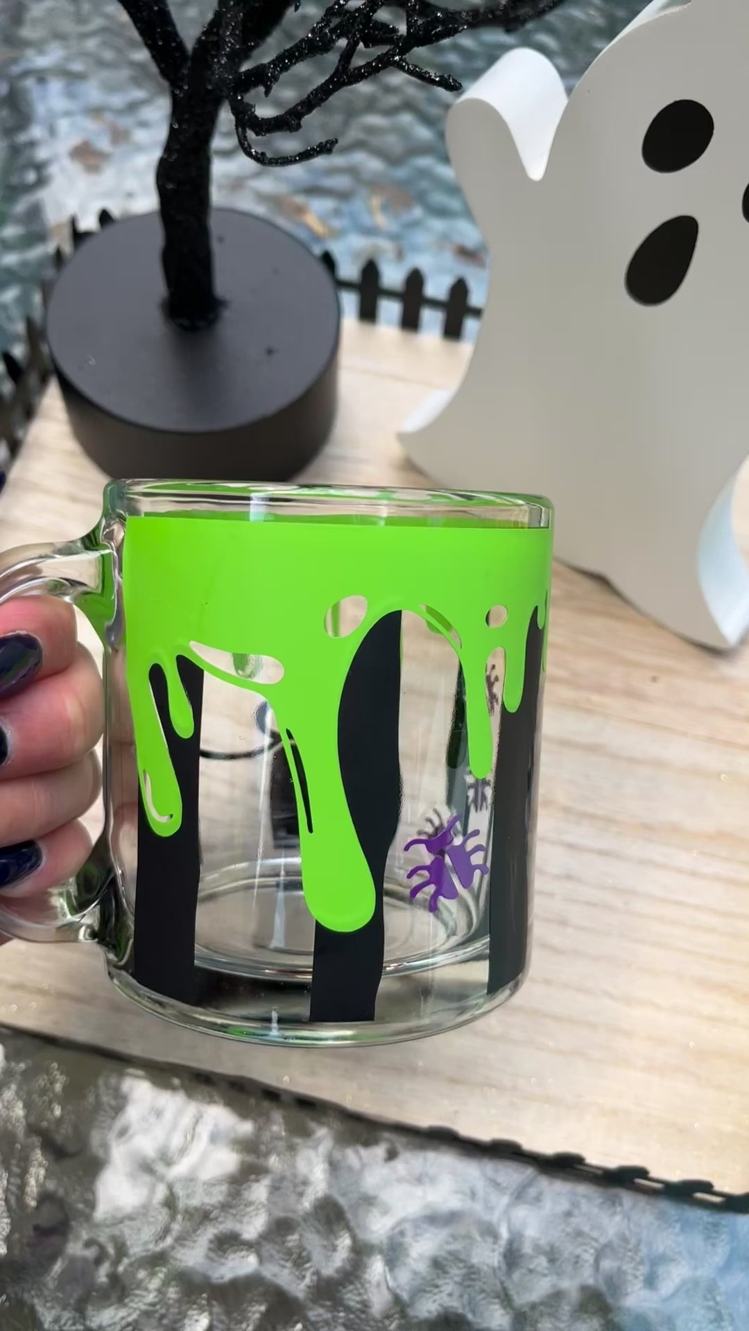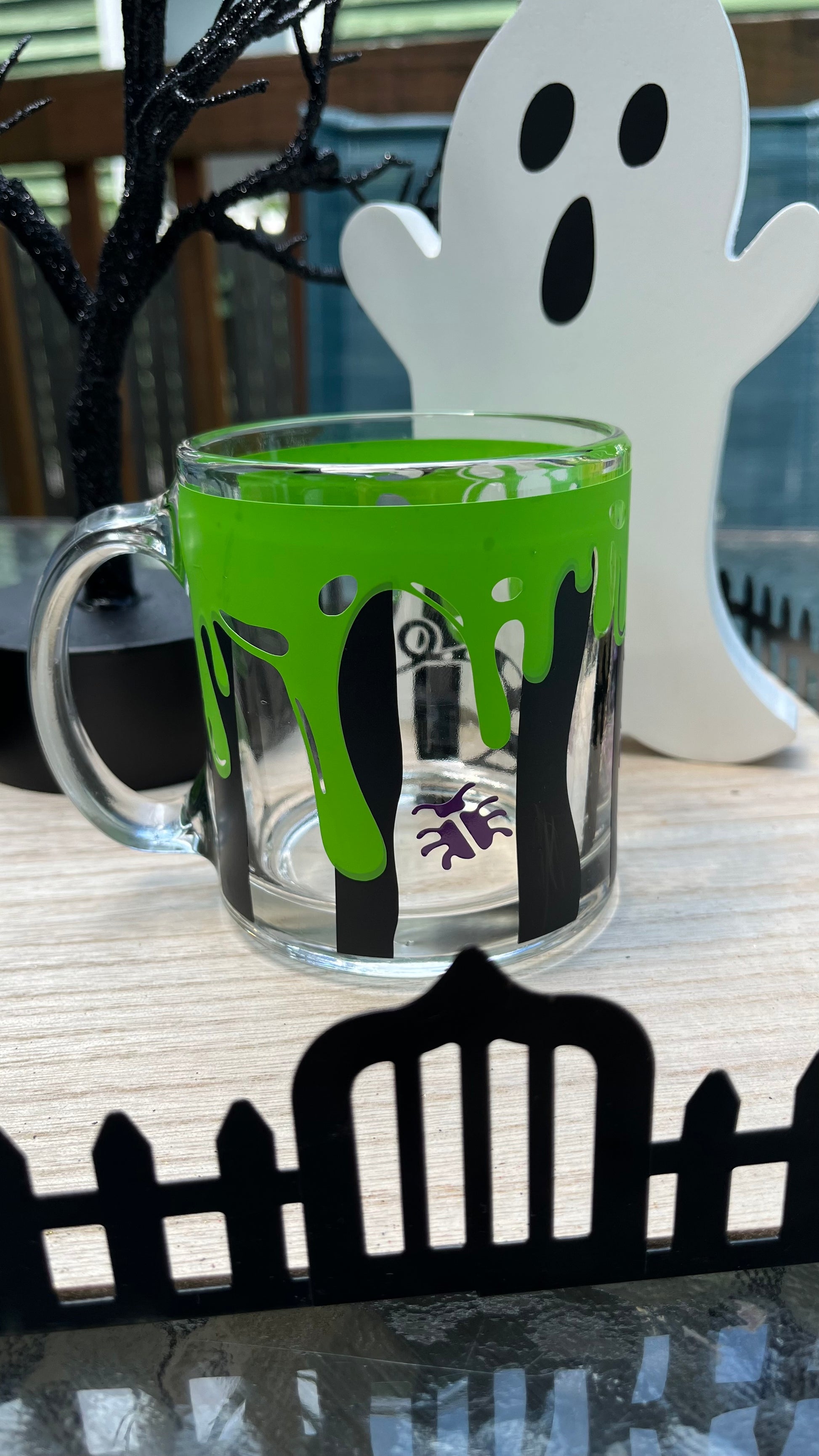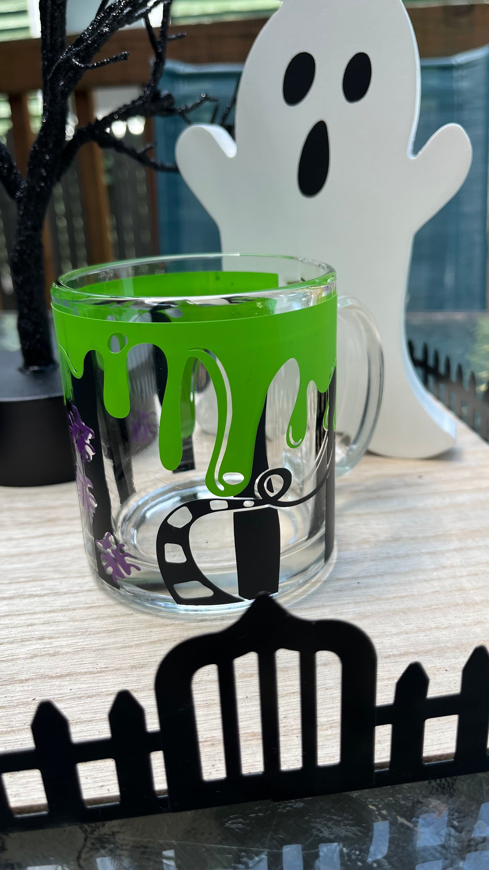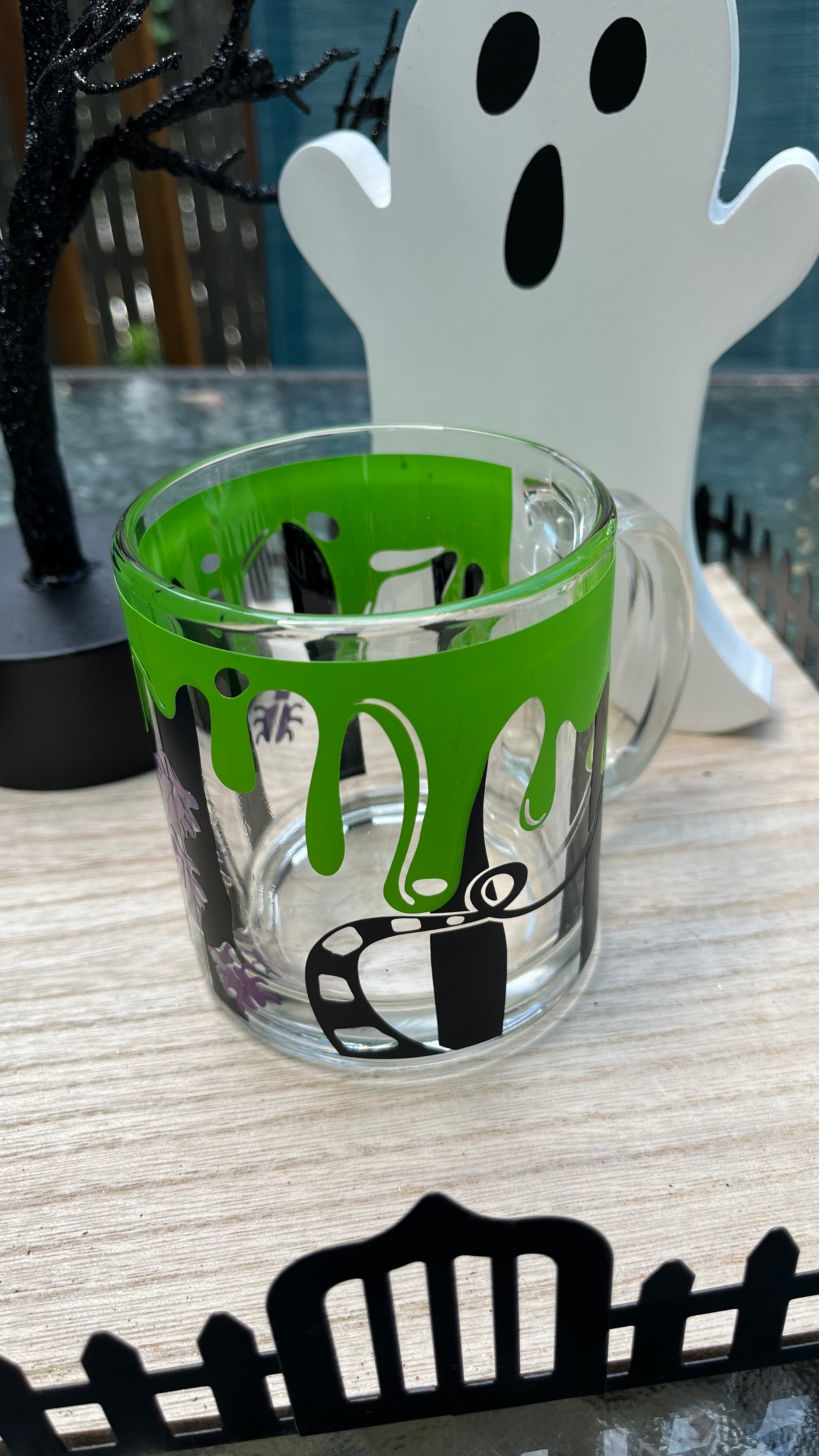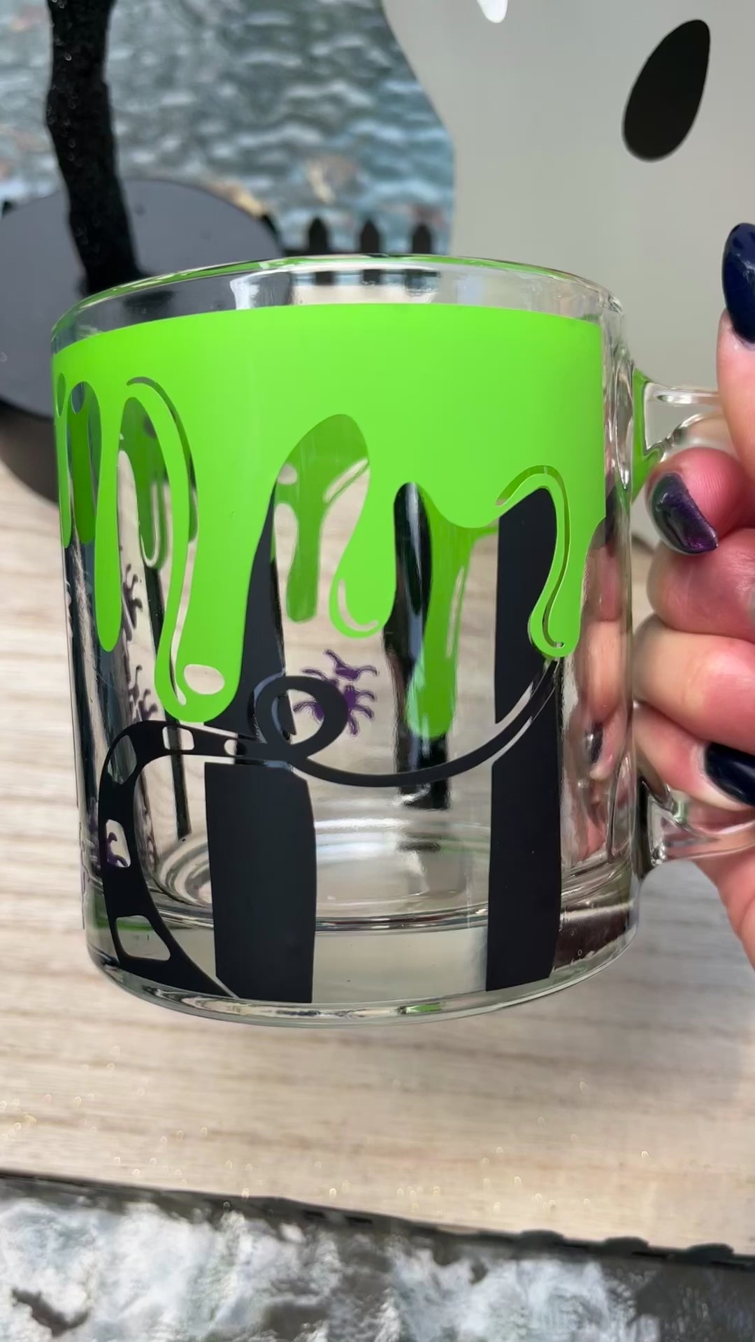 Beetlejuice inspired glass mug
