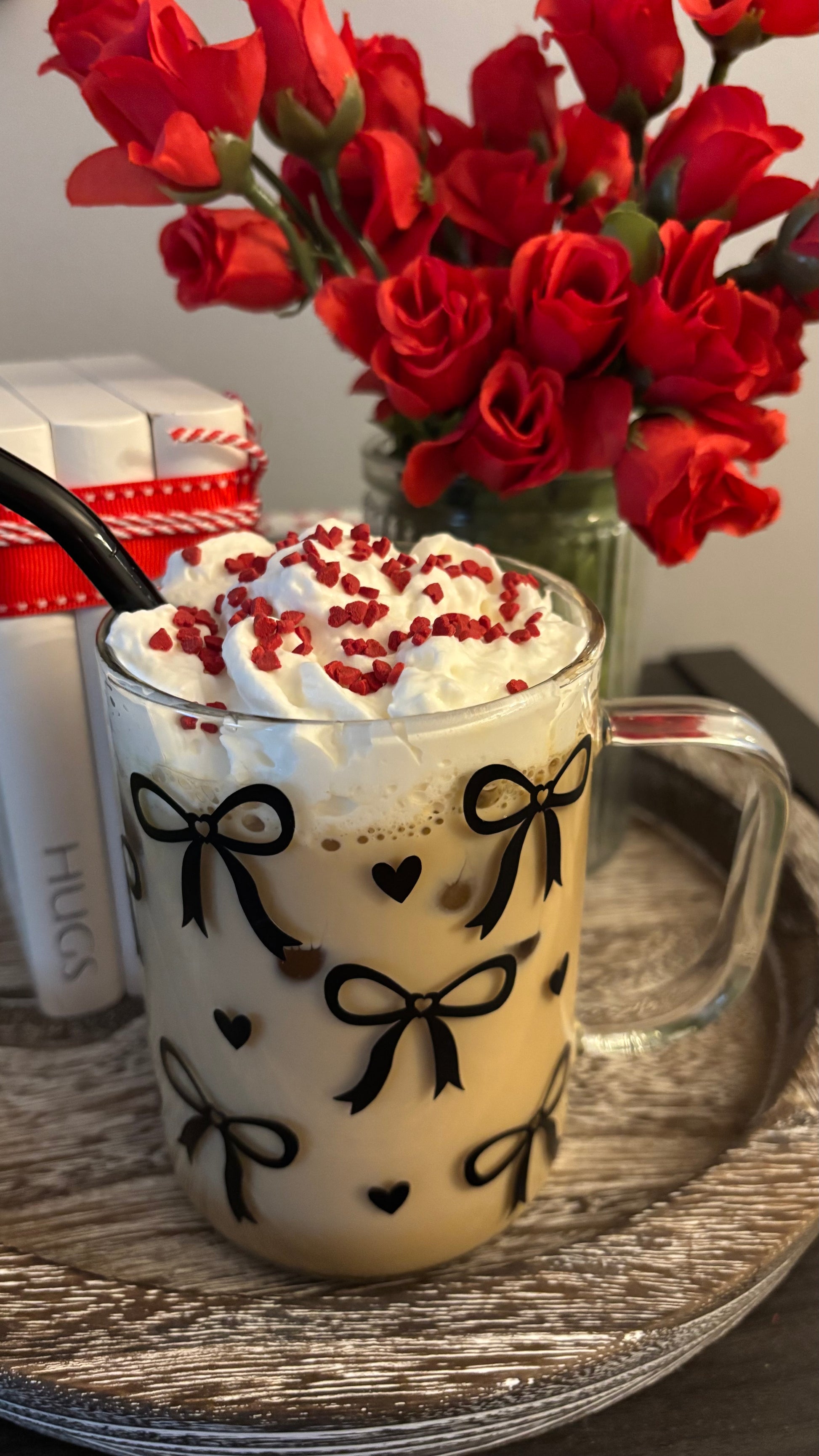 Black bows glass mug