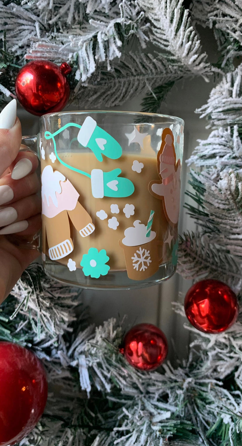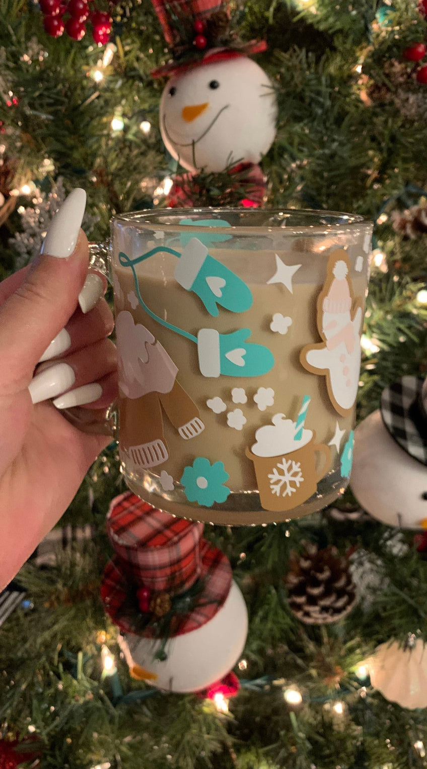 Boho winter glass mug