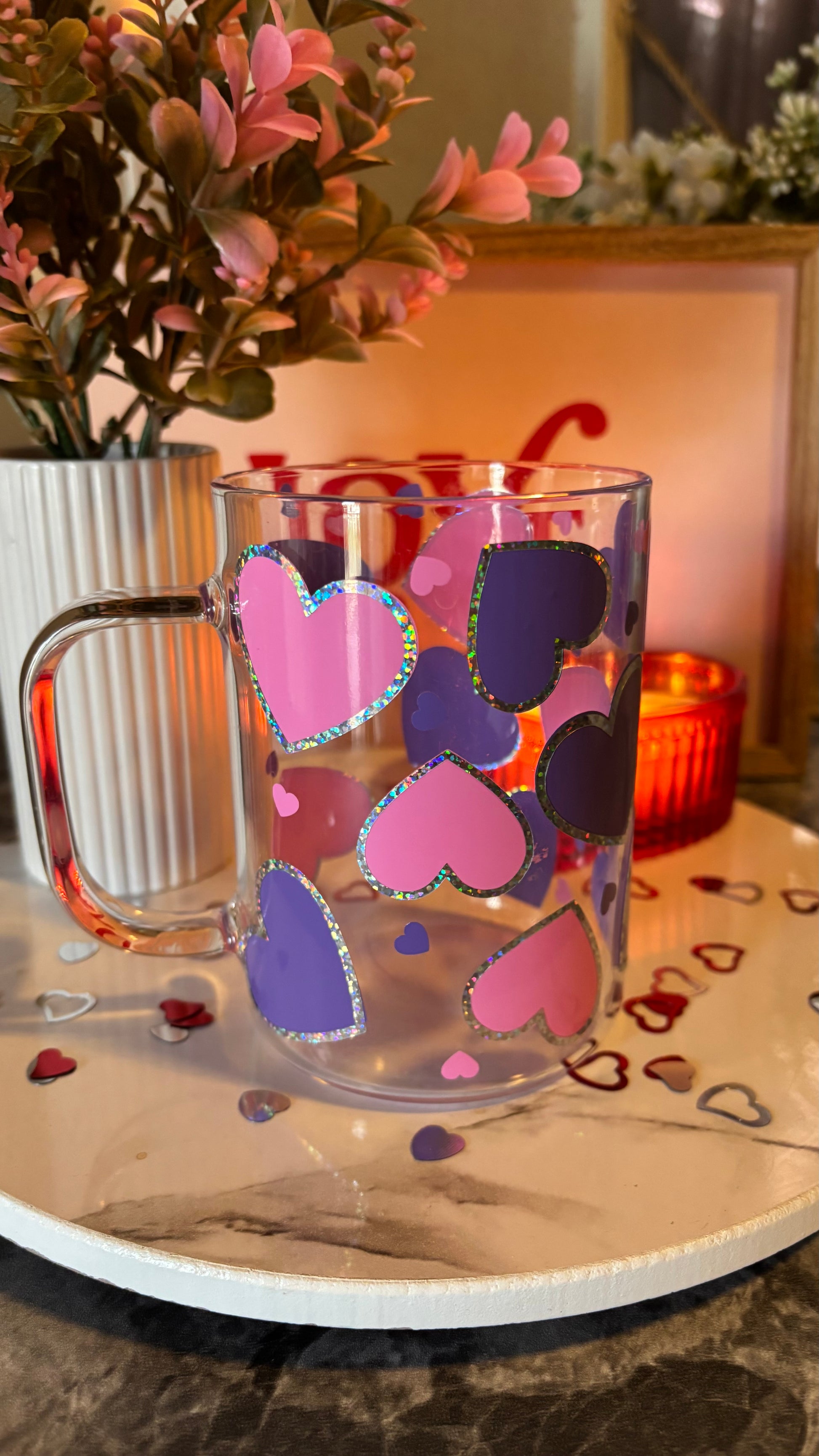 Cute Hearts glass mug