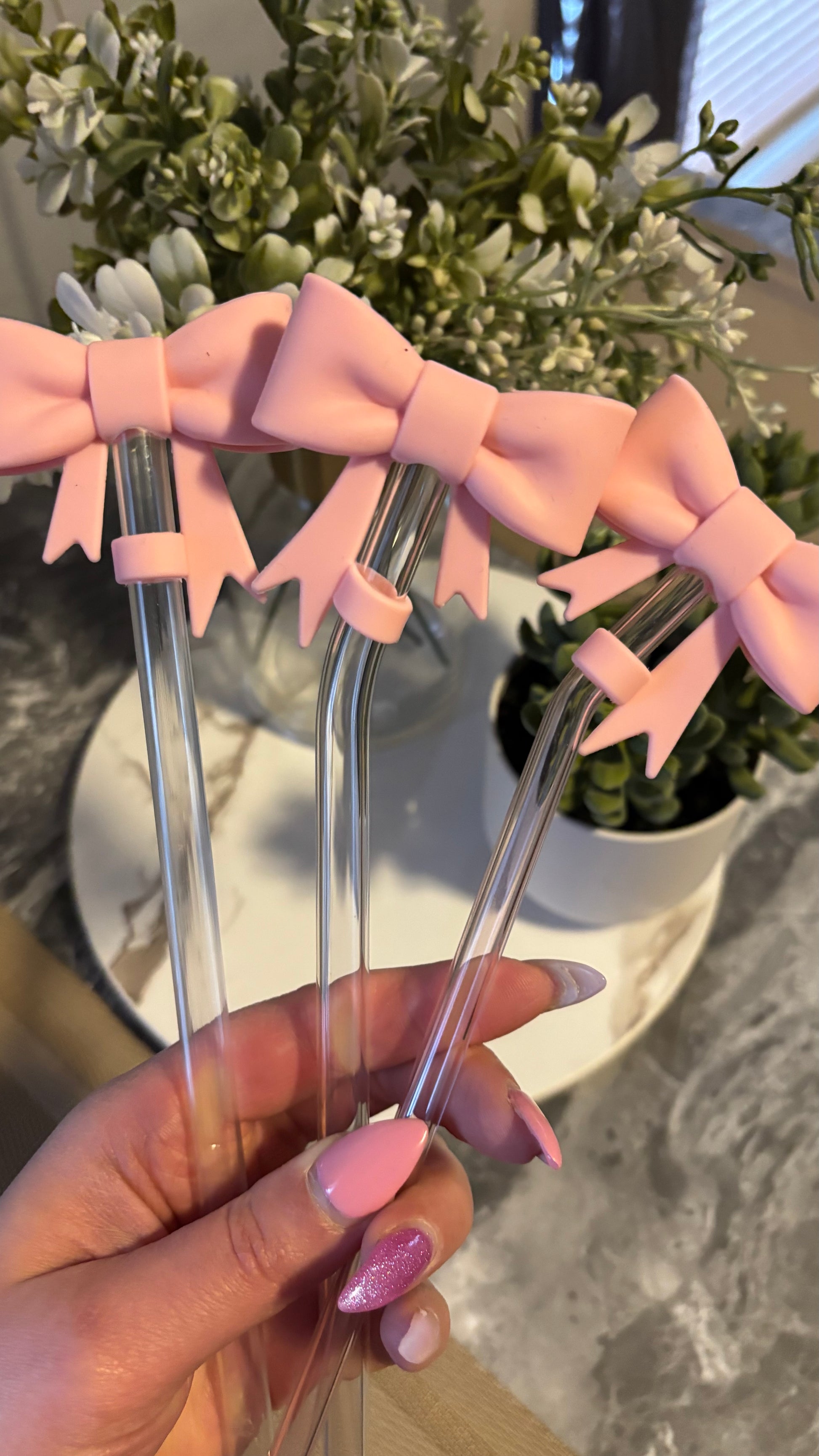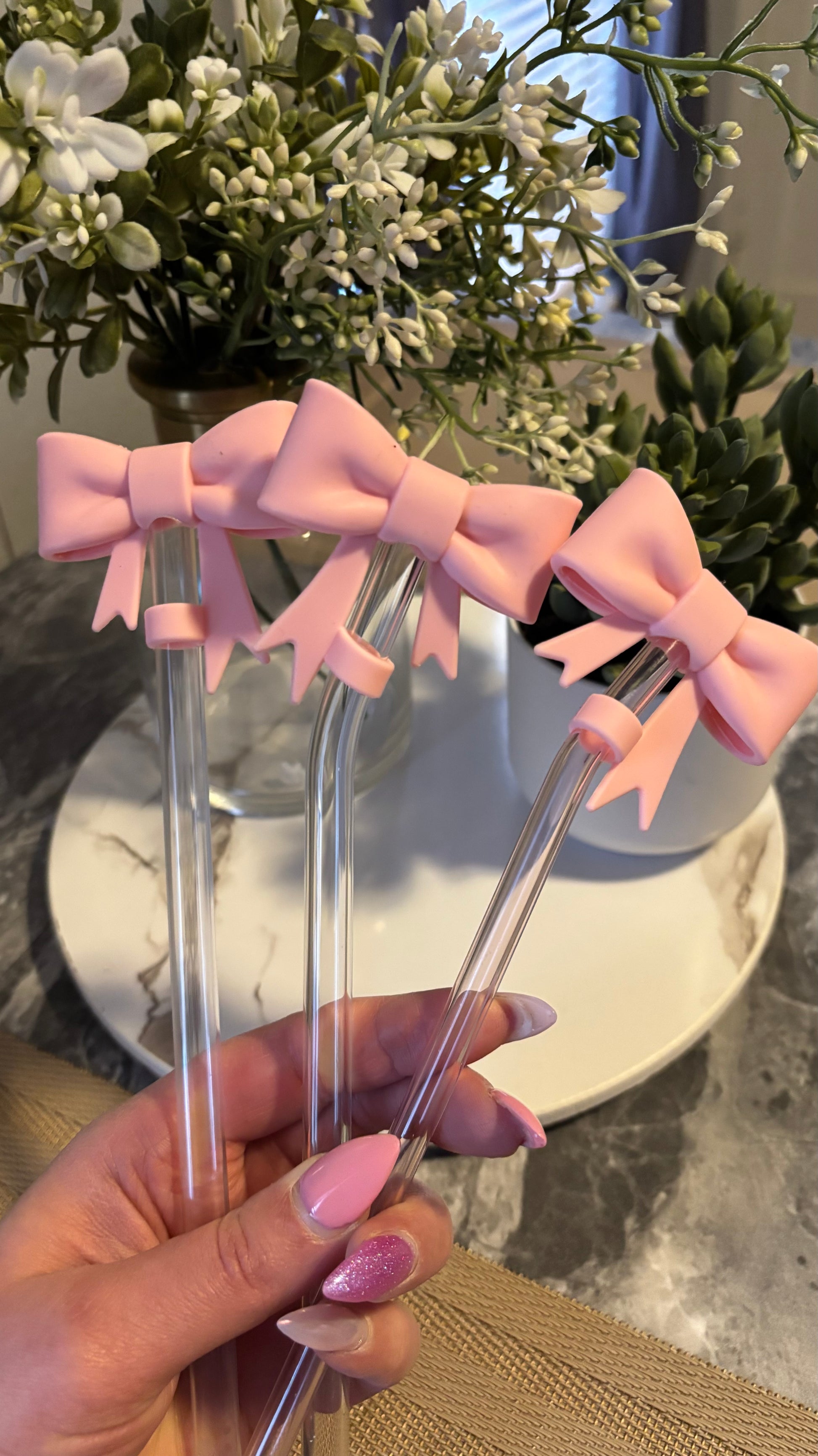 This Pink silicon bow straw topper is the cutest addition to personalize your cup.