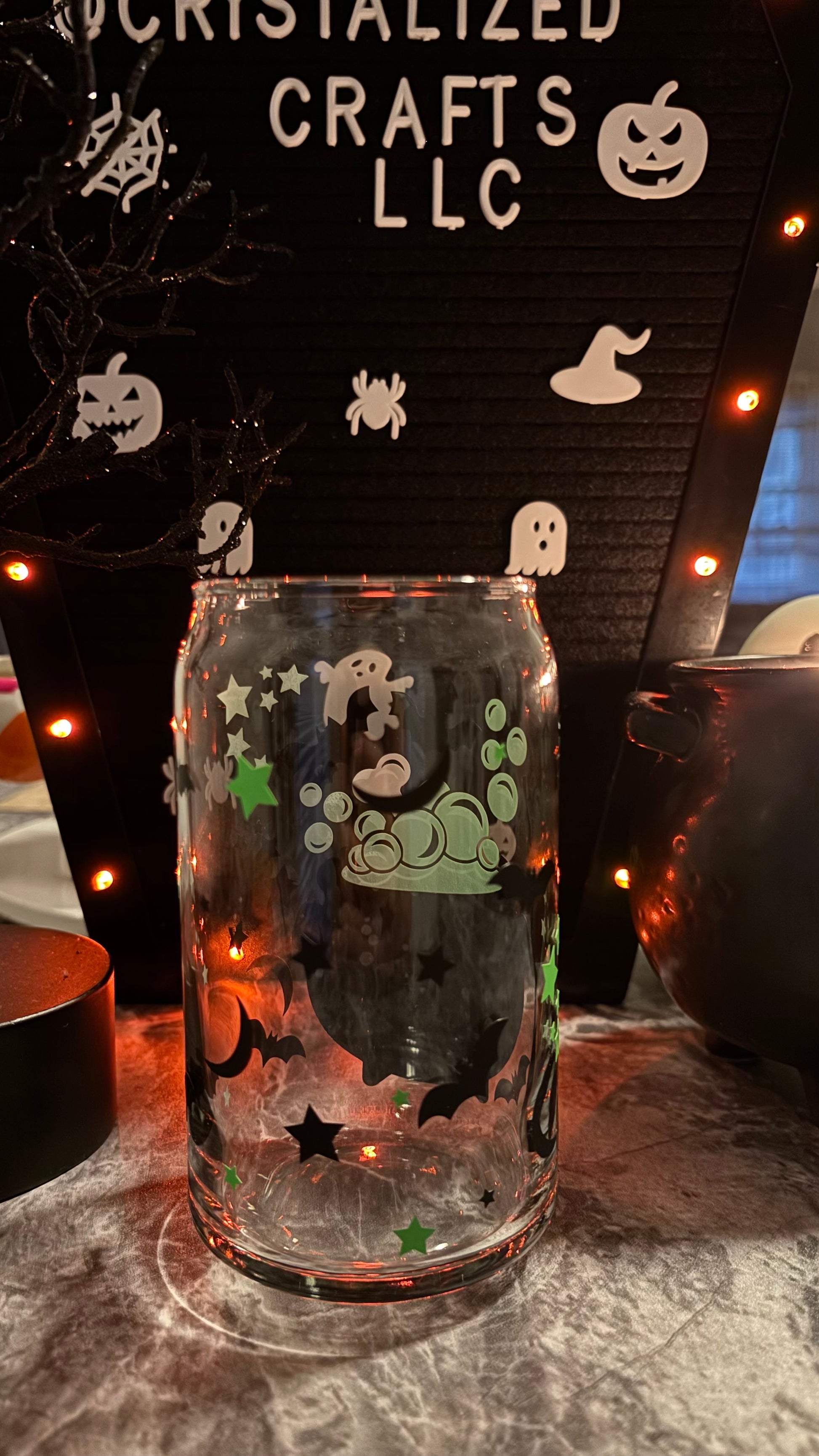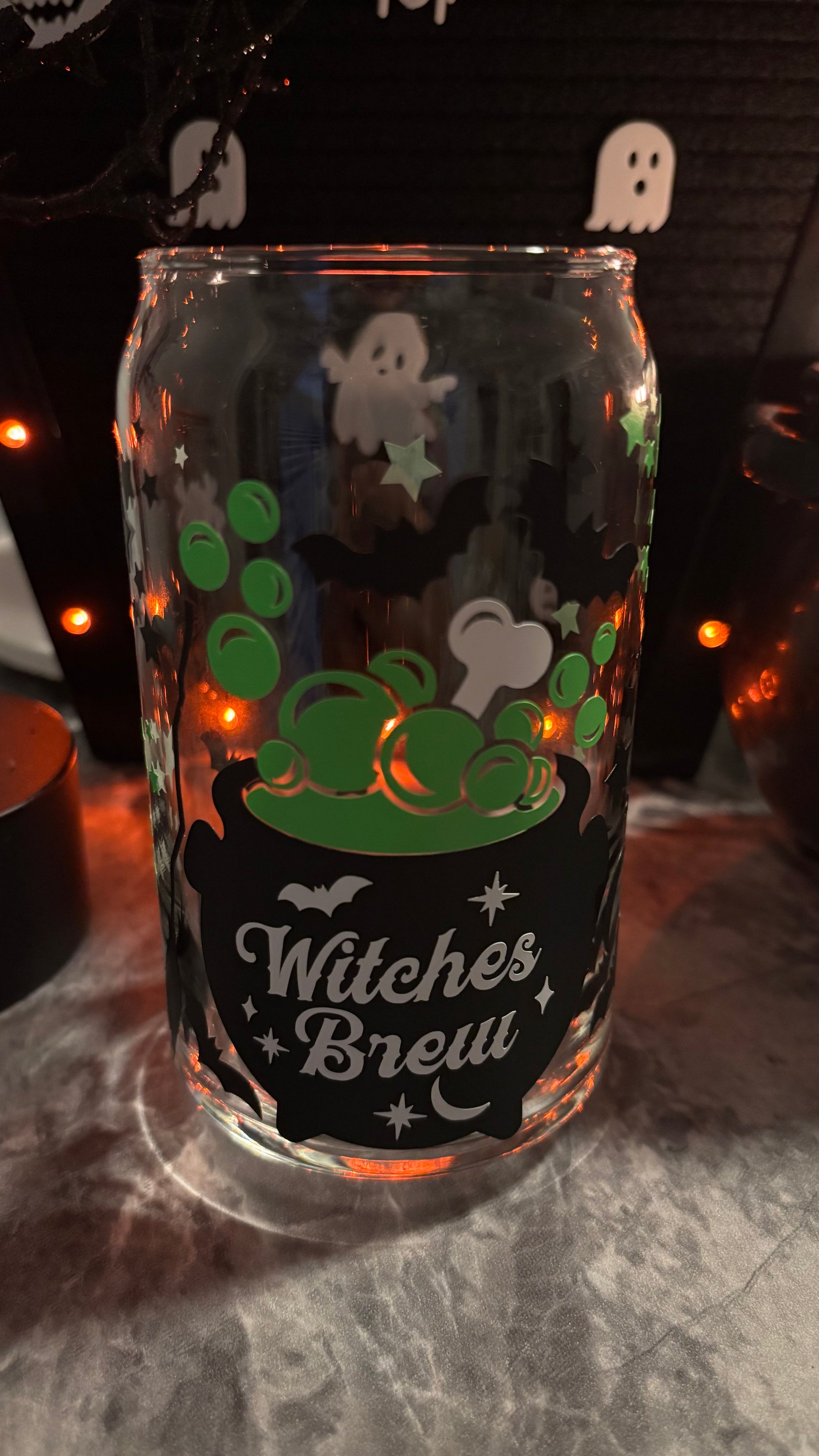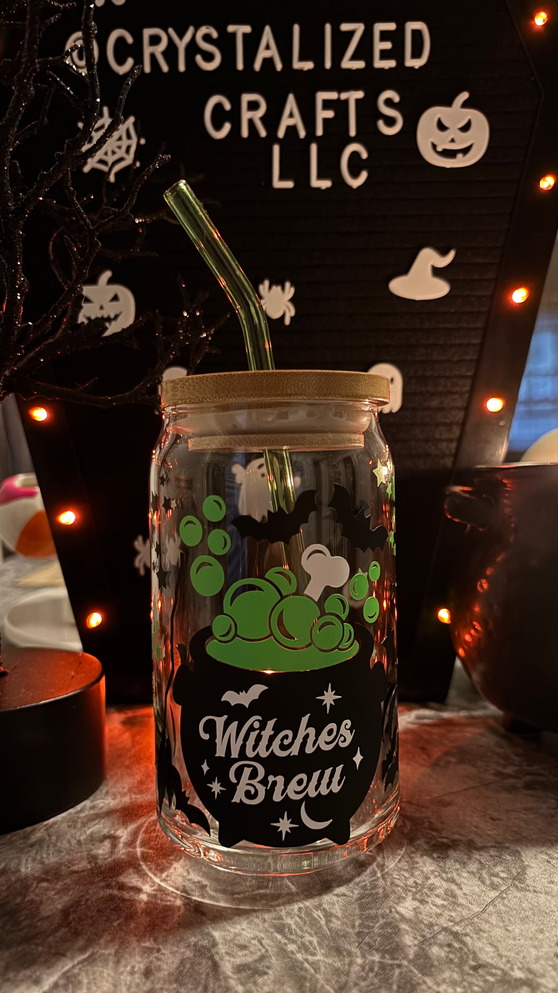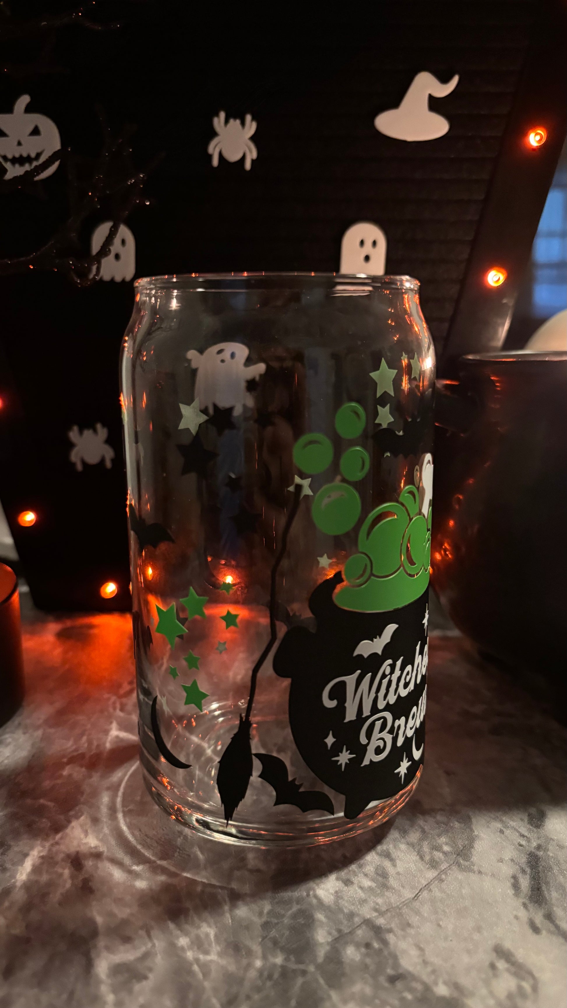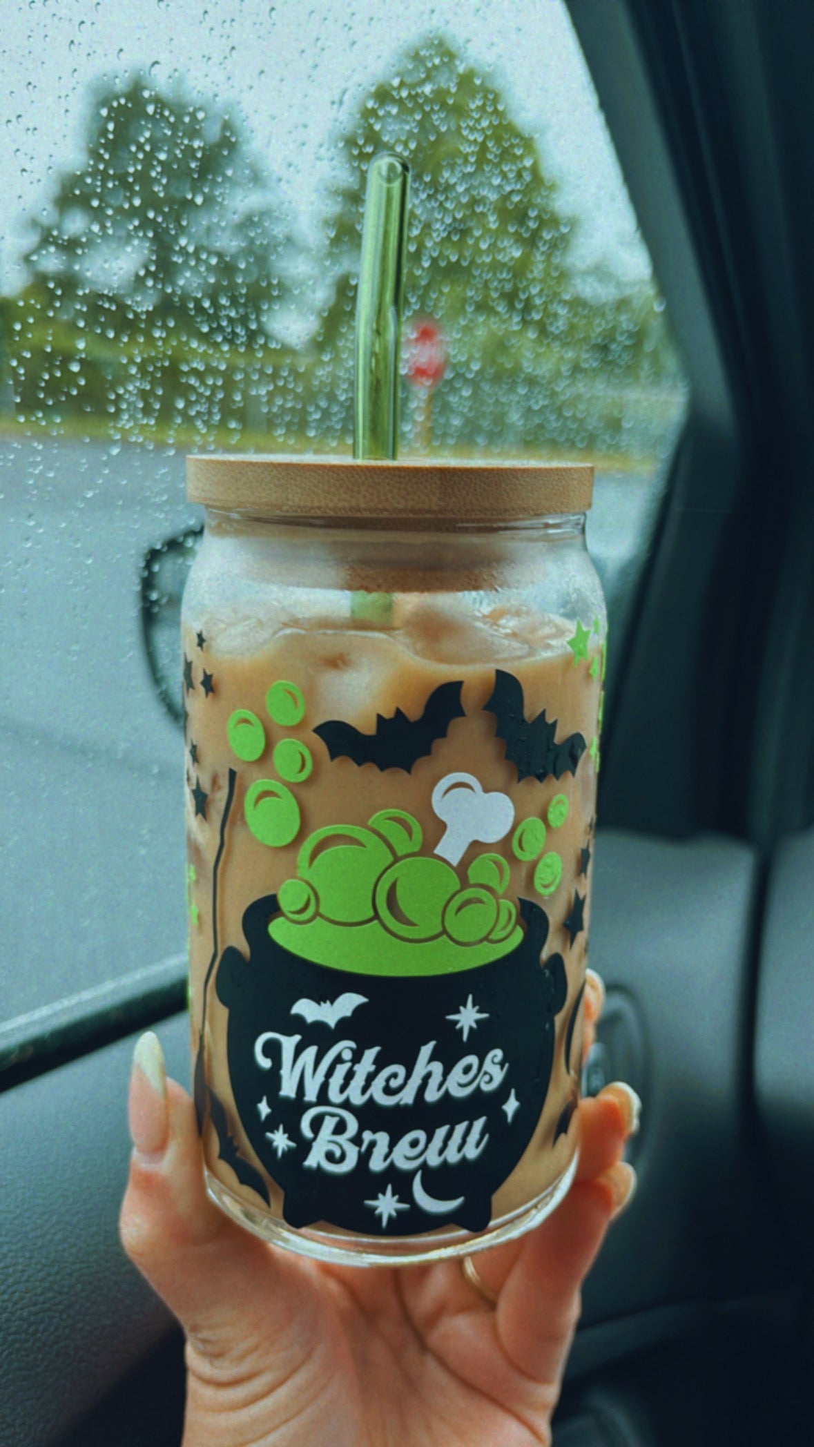 Elevate your iced coffee and cold beverages with our Witches brew glass cup! Made with durable and thick libbey glass, it is designed to make a statement. With a bamboo lid and glass straw options included, it's perfect for on-the-go use.